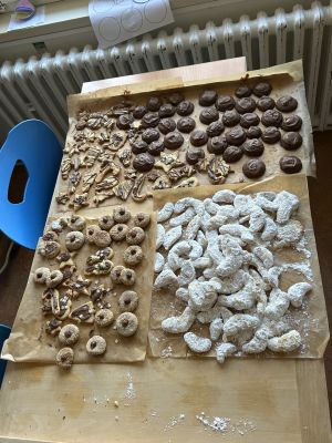 Auch die Klasse 10 ist gewappnet für Weihnachten: Sie haben sich am Montag an die Weihnachtsbäckerei gewagt: Vanillekipferl, Nutellakekse, klassisches