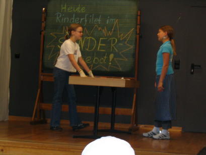 Jäkel aus der G10 und ein kleines Theaterstück mit Annika Nüsse und Sophie Finger aus der G6.. |